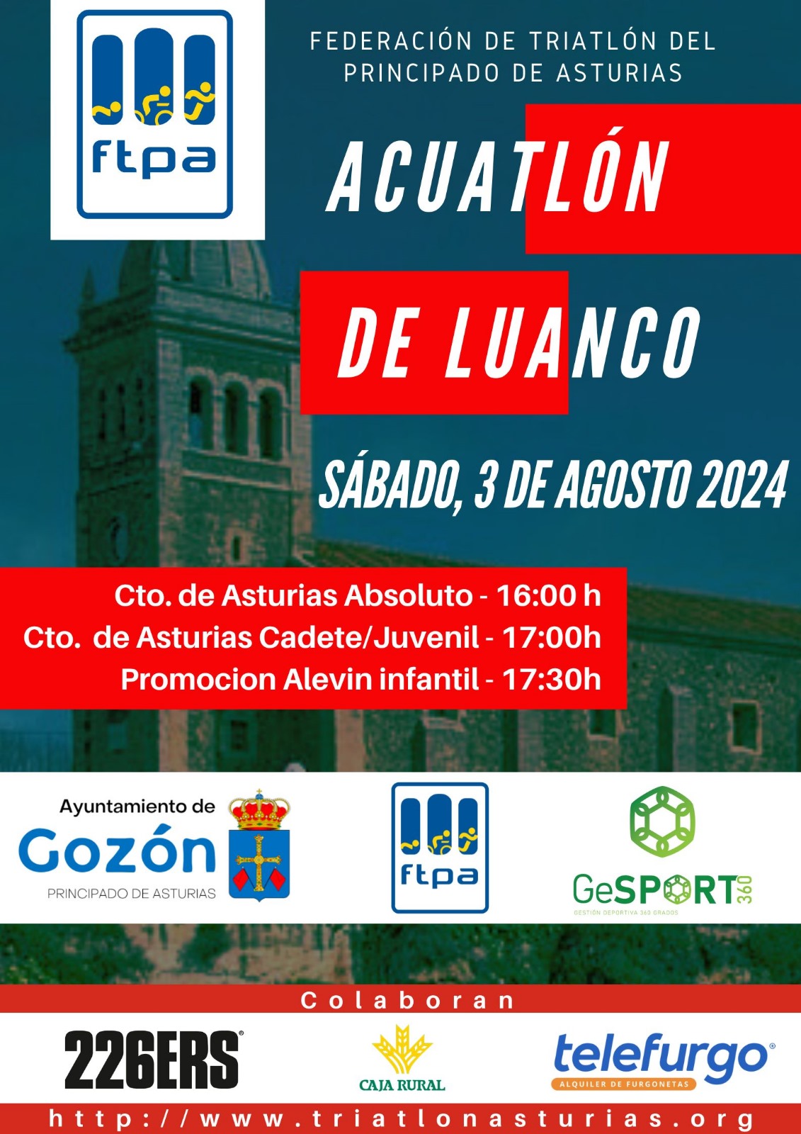 La Federación Asturiana de Triatlón, el Ayuntamiento de Gozón y GeSPORT360, organizan el Acuatlón de Luanco el próximo 3 de Agosto en Luanco.