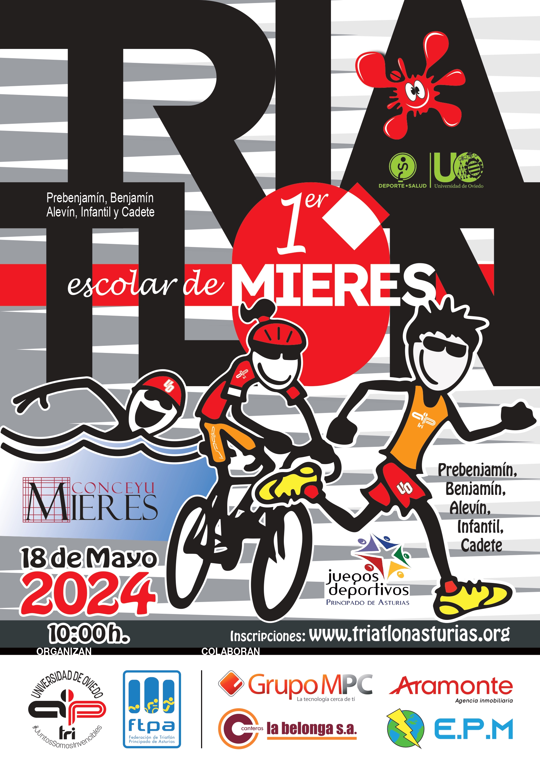 El Club APtri, junto a la Federación de Triatlón del Principado de Asturias organiza el I Triatlón Escolar de Mieres, el próximo 18 de mayo de 2024, dentro del marco de los Juegos Escolares del Principado de Asturias 2023/2024