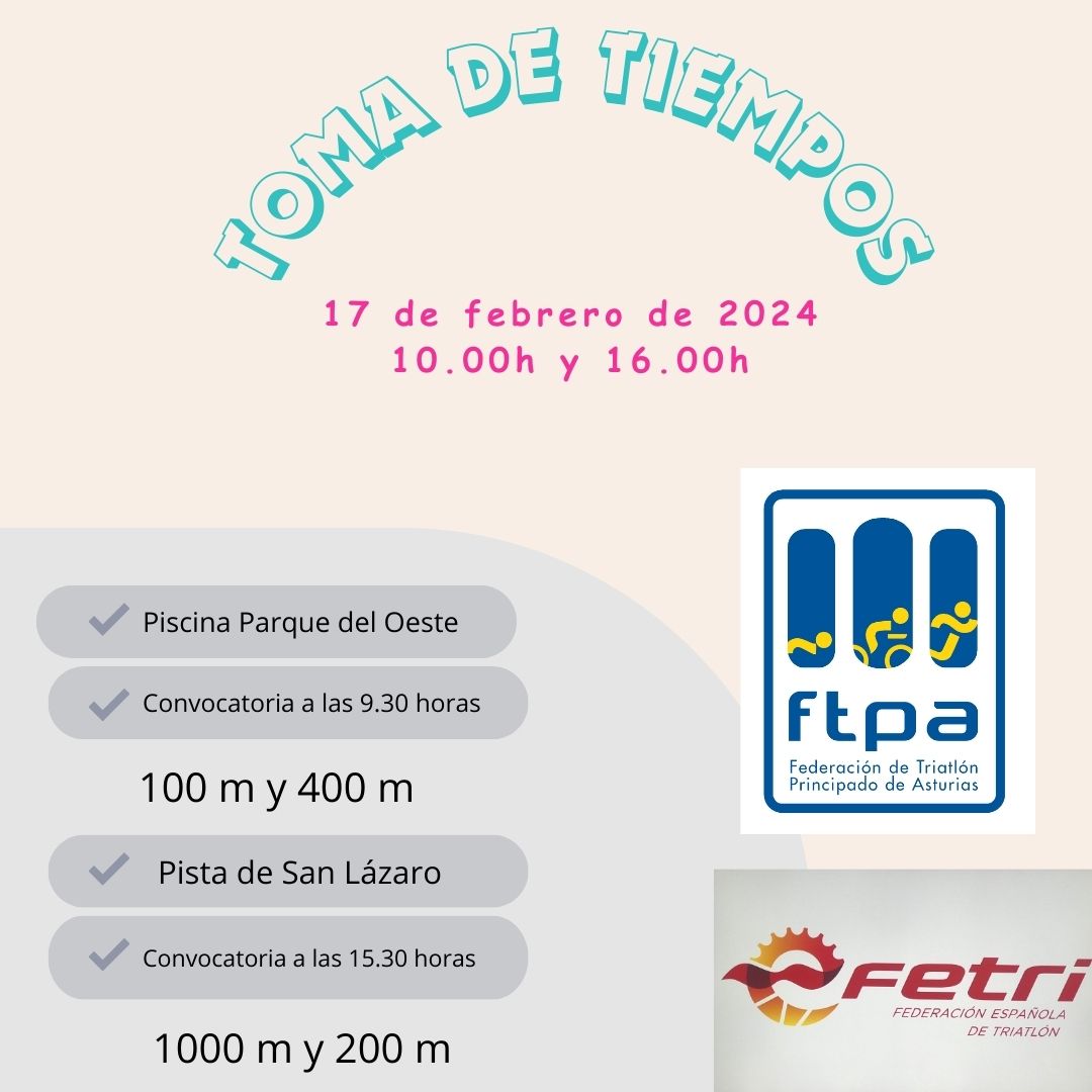 La Federación de Triatlón del Principado de Asturias convoca, desde su departamento de tecnificación, la Toma de Tiempos 2024.