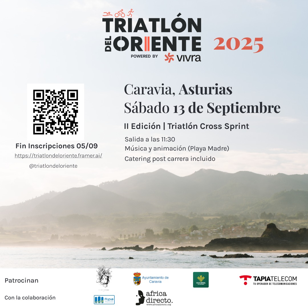 El sábado 13 de septiembre se celebra la segunda edición del Triatlón del Oriente by Vibra, en Caravia.