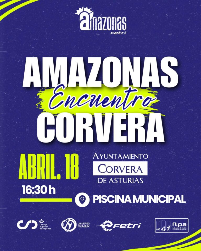 El 18 de abril se celebra la primera jornada del programa Amazonas, tendrá lugar en la piscina municipal de Corvera de Asturias, a las 16:30. 16:30 Punto de encuentro en la entrada de la piscina16:40 Bienvenida y presentación de la sesión17:00 Calentamiento en seco17:15 Entrenamiento natación18:15 Foto grupal18:20 fin de